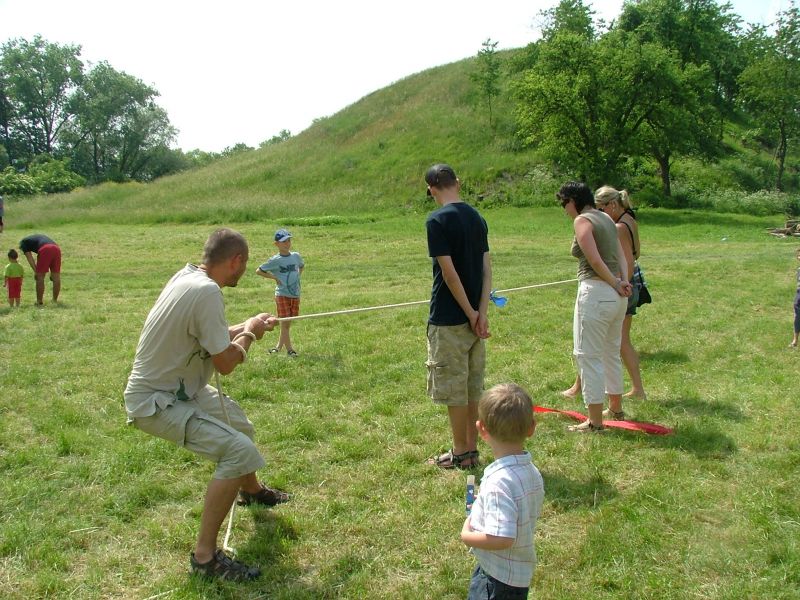 Dětský den probíhal na fotbalovým hřišti-děti soutěžili o cukrovinky.